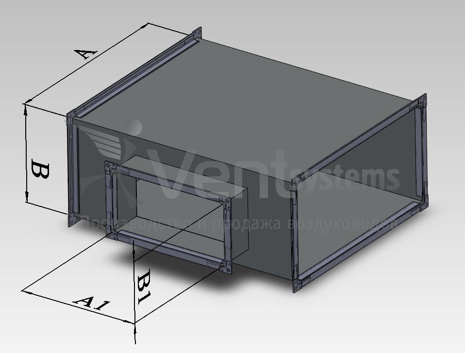 Прямоугольный стальной оцинкованный тройник с фланцами и прямоугольной врезкой