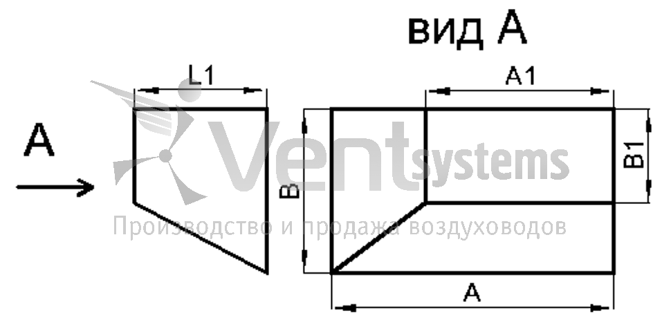 Прямоугольный стальной оцинкованный переход с фланцами (длина перехода подбирается автоматически, исходя из рекомендованных параметров)