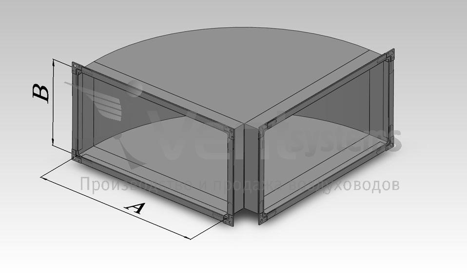 Прямоугольный стальной оцинкованный отвод с фланцами и шейкой радиусом